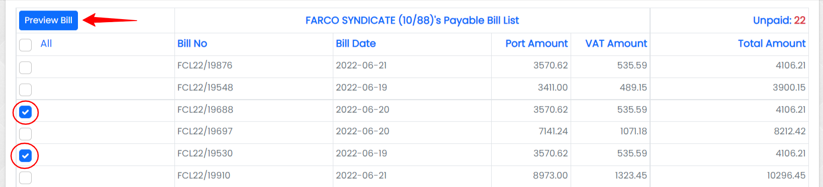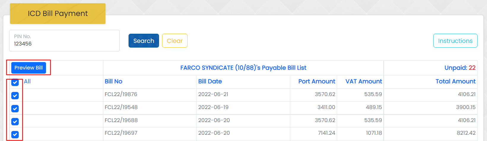 | "Full Payment" করতে চাইলে "ALL" চেকবক্স সিলেক্ট করে "Preview Bill" বাটনে ক্লিক করুন। |