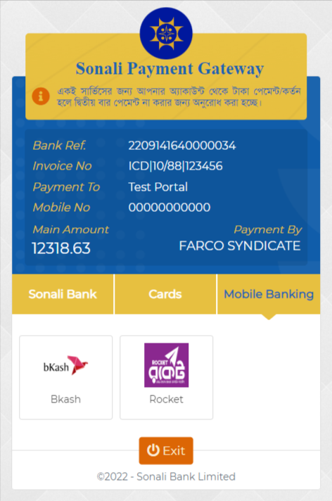 | সোনালী পেমেন্ট গেটওয়েতে সোনালী ব্যাংক একাউন্ট ট্রান্সফার/যেকোন কার্ড/মোবাইল ব্যাংকিং এর মাধ্যমে পেমেন্ট সম্পন্ন করুন। |